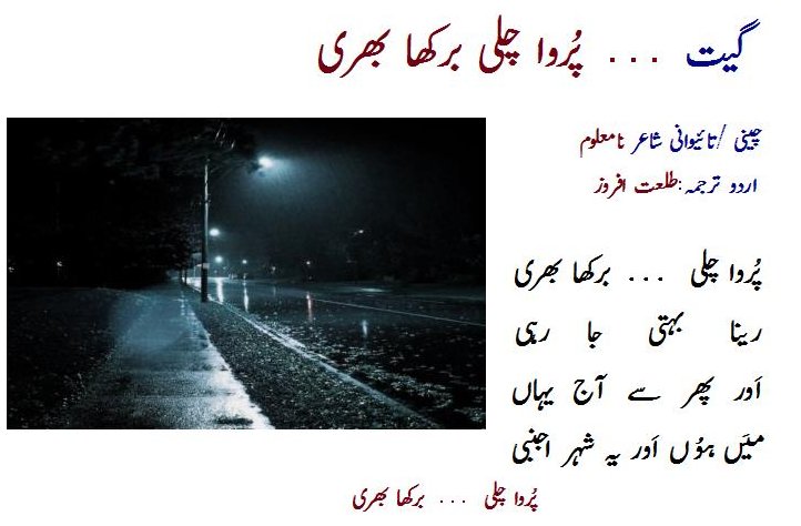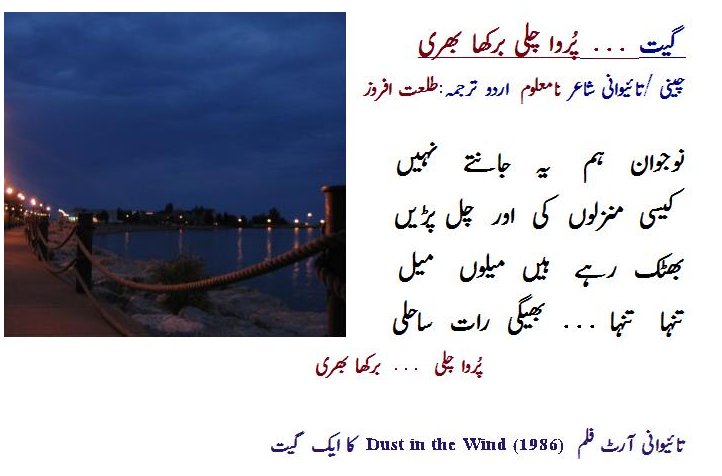 Urdu translation of a Chinese language song from the Taiwanese Art Film "Dust in the Wind" directed by Hou Hsiao-Hsien