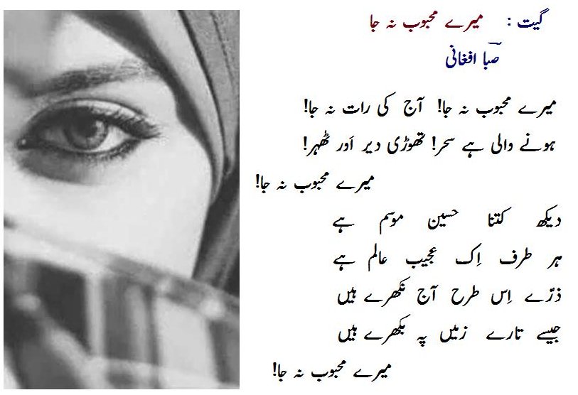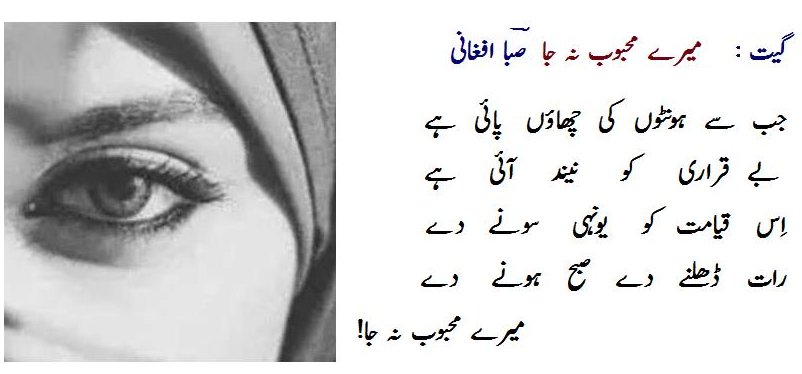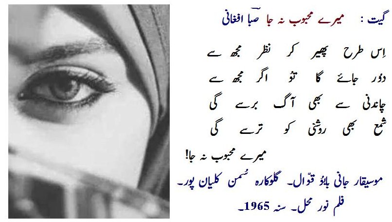 The lyrics are by Saba Afghani, an Urdu poet from Rampur, Uttar Pradesh, India. This song was the block buster hit song in the Bollywood movie Noor Mahal released in 1965.