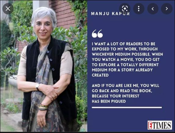 An internationally acclaimed Indian woman novelist, Manju Kapur (1948 - ), the Common Wealth Prize winner is also called the Jane Austen of India.